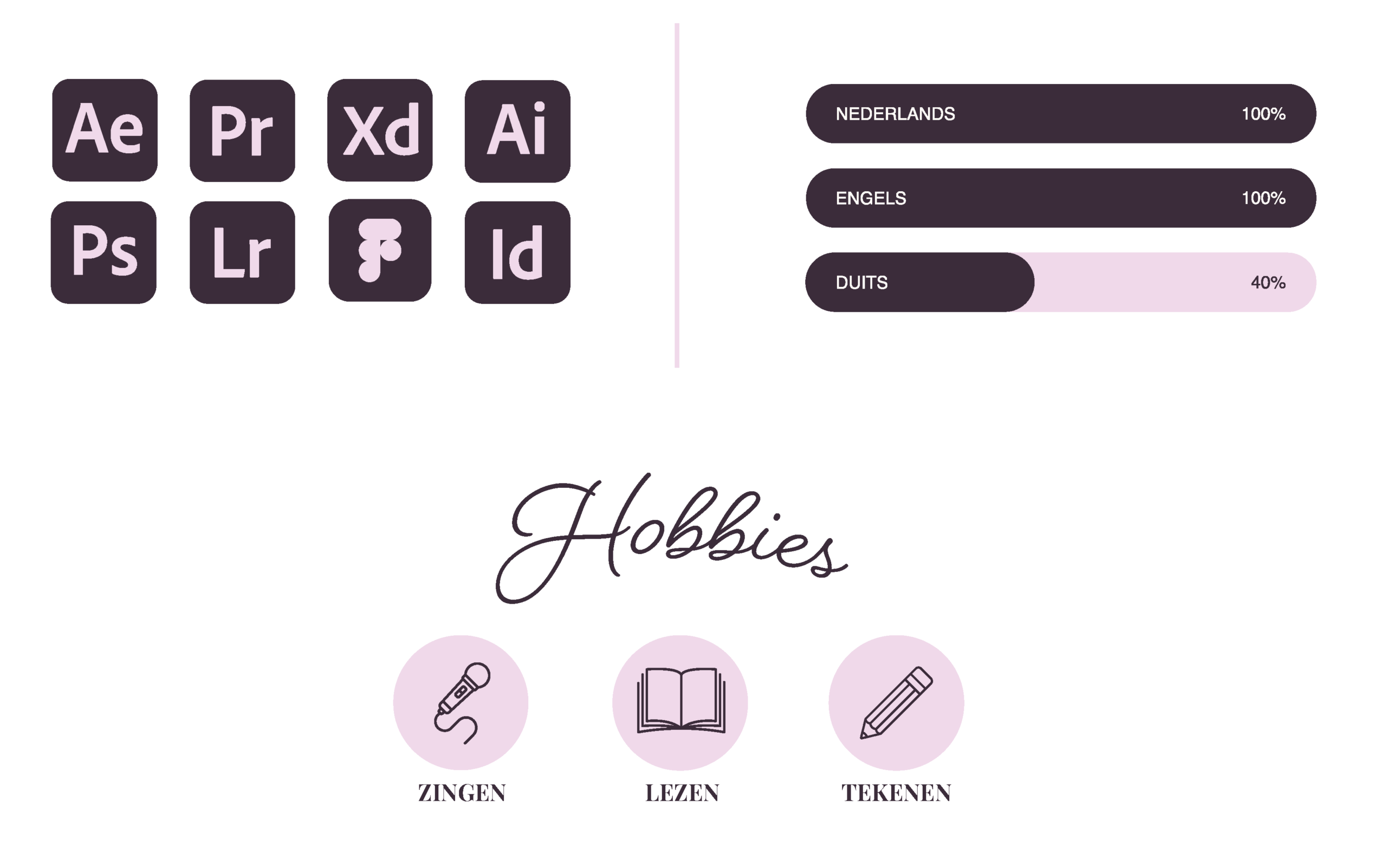 Ik kan me geen moment herinneren waarop kunst geen rol speelde in mijn leven. Als kind greep ik alles wat ik kon vinden: een kwast, een potlood of een microfoon. Thuis had ik altijd talloze projectjes én een radio die net iets te hard stond (sorry mam <3). Op de basisschool begon muziek een grotere plek in mijn leven te krijgen, toen ik op zangles mijn vaardigheden mocht ontwikkelen en zelfs kon optreden. Nu, jaren later, kijk ik met trots en dankbaarheid terug op alle kansen die ik heb gekregen.