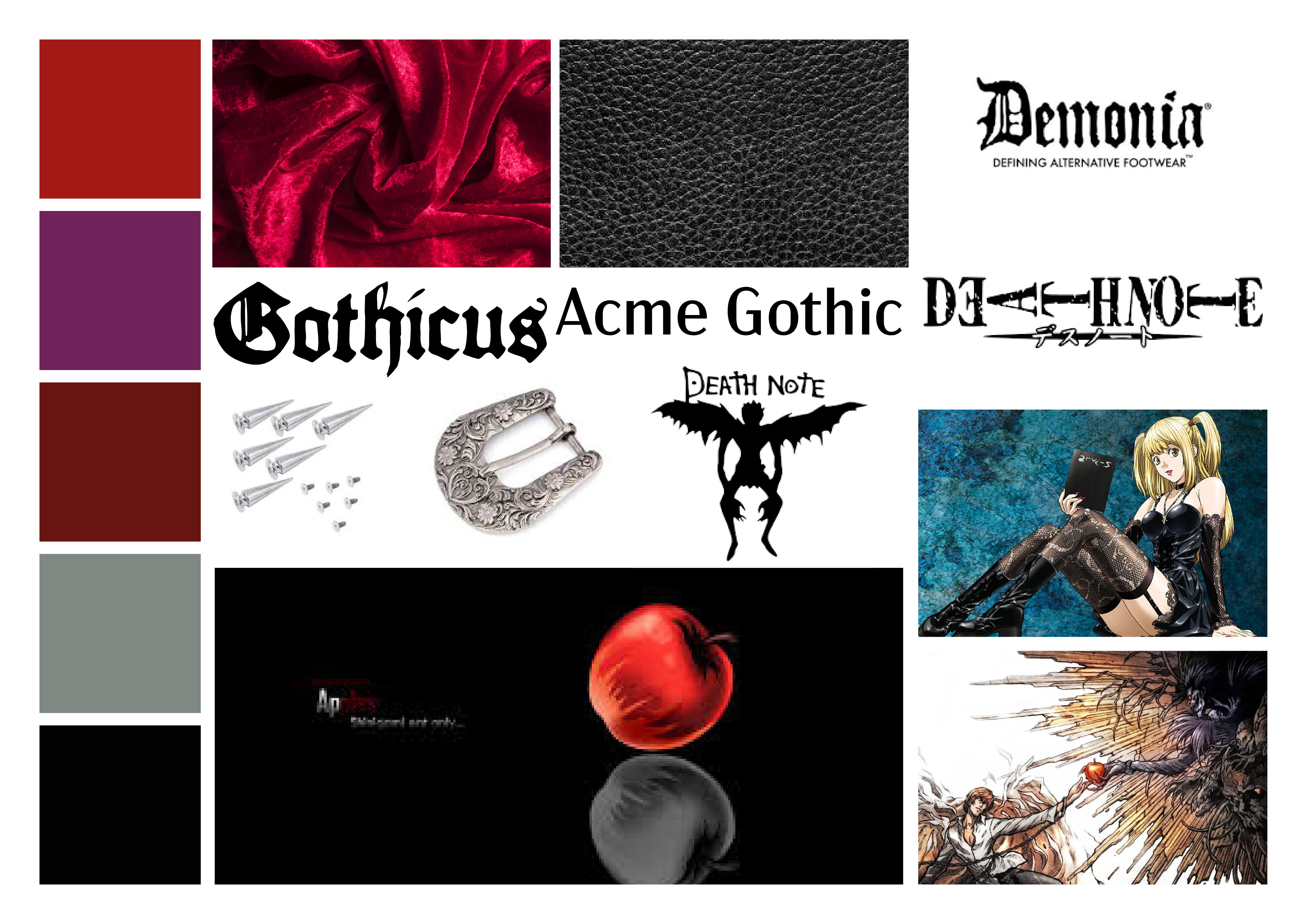 Bij dit project, kregen wij de opdracht om een samenwerking tussen een merk en een franchise samen te stellen. Hiervoor kreeg ik het merk "Demonia", en de franchise "Death Note", die ik samen heb verwerkt tot een schoenen-collectie met passend conceptbord en logo.
